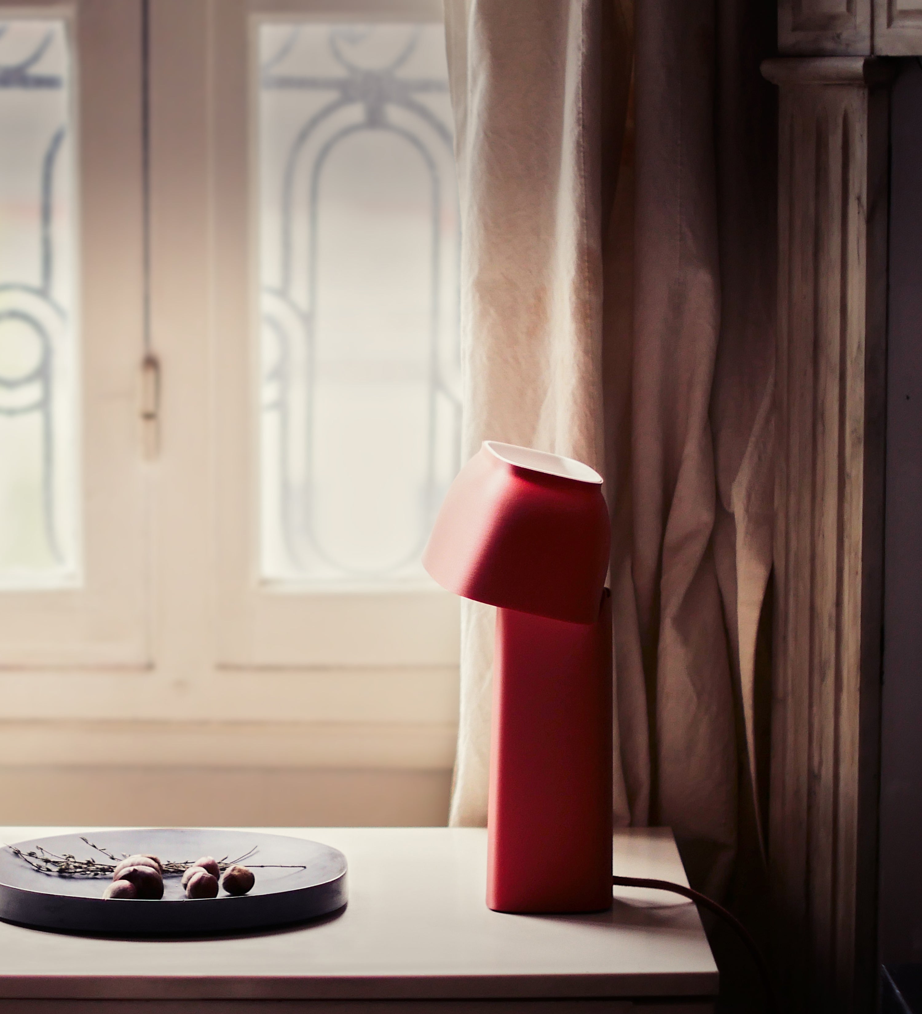 mrlt est une lampe à poser conçue pour être exclusivement imprimée en 3d. Abat-jour, réflecteur, pied et socle sont imprimés indépendamment pour s'emboîter les uns dans les autres sans colle, ni vis.
